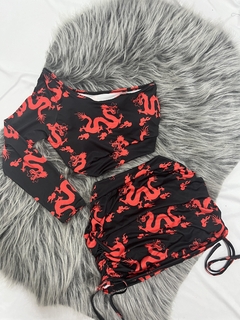 Modelo : conjunto dragão vermelho estilo moda gringa